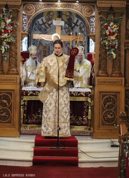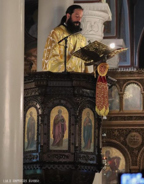 Επικεφαλής του Πρεσβυτερίου ήταν ο αρχιμ. Ιωάννης Καραμούζης-Αρχιγραμματεύς της Ι. Συνόδου της Εκκλησίας της Ελλάδος και ιεροκήρυξ της Ι. Μητροπόλεως Χαλκίδος, ο οποίος κήρυξε τον θείο λόγο αφορμώμενος από την αναγνωσθείσα ευαγγελική περικοπή (Ιωάν. 10, 9-16) και ανέπτυξε το θέμα, ότι ο Χριστός είναι η θύρα των ανθρώπων, διά του οποίου εισέρχονται στη Βασιλεία του Θεού και πώς αυτό περιγράφεται μέσα στη χρυσοστομική γραμματεία και πώς, επίσης, εκφράζεται στην ευθυνοφόρο και ένζηλη ποιμαντική του εορτάζοντος Μητροπολίτου Χαλκίδος κ. Χρυσοστομου.