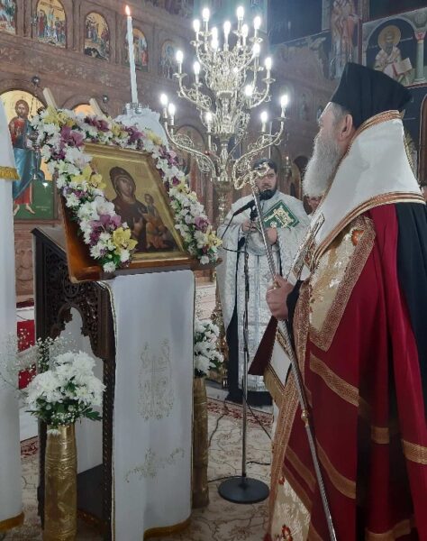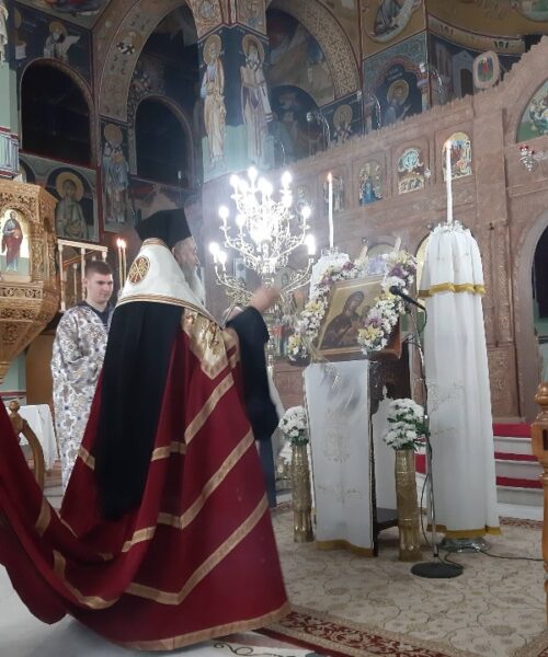 Στο κήρυγμά του ο Σεβασμιώτατος αναφέρθηκε στα χαρίσματα της Παναγίας, όπως αυτά αναφέρονται και ψάλλονται στους ύμνους της ιεράς ακολουθίας των Χαιρετισμών, τόνισε ότι η Θεοτόκος, ως υπέρμαχος στρατηγός και προστάτις λυτρώνει τους πιστούς από προσβολές και εισβολές και προσκάλεσε τους πιστούς να μένουν πιστοί στην προστασία της Παναγίας και την σωτηρία που χαρίζει σε όλους ο Υιός της και Θεός μας, Ιησούς Χριστός μέσα από την Θεία Κοινωνία.