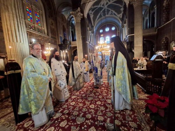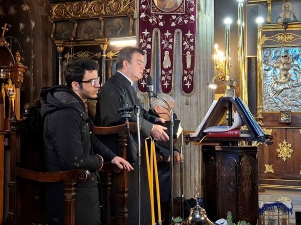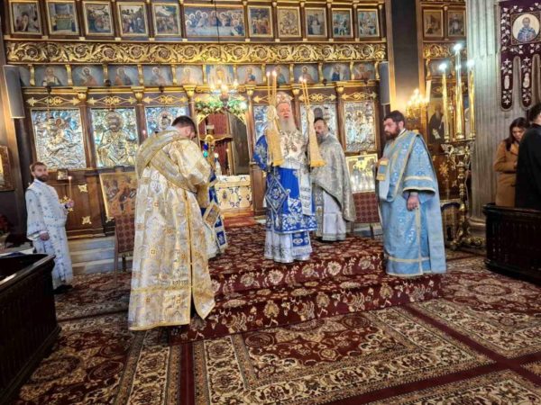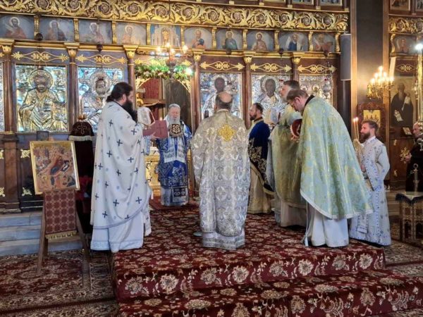 Ο Σεβασμιώτατος χοροστάτησε στον Όρθρο, προεξήρχε της Θείας Λειτουργίας και τέλεσε τον Μεγάλο Αγιασμό, πλαισιούμενος από Κληρικούς του, με επικεφαλής τον αρχιμ. Ιωάννη Καραμούζη-ιεροκήρυκα της Ι. Μητροπόλεως Χαλκίδος και Αρχιγραμματέα της Ιεράς Συνόδου της Εκκλησίας της Ελλάδος.