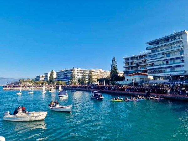 Αμέσως μετά, έλαβε χώρα η λιτάνευση του τιμίου Σταυρού και η τελετή καθαγιασμού των υδάτων στην παραλία της Χαλκίδος, με τη συμμετοχή εκατοντάδων χριστιανών, που κατέκλυσαν όλο τον παραλιακό πεζόδρομο της πόλης.