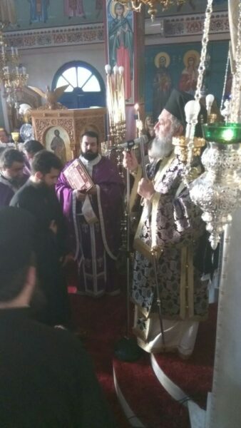 Κατά τη διάρκεια της Προηγιασμένης, χειροθέτησε Αναγνώστη τον 27ετή συνεργάτη της Ενορίας κ. Βασίλειο Πούλιο και κήρυξε τον θείο λόγο προς τους πιστούς, αναλύοντας το περιεχόμενο του πρώτου εσπερίου τροπαρίου «Τοις των εμών λογισμών, λησταίς περιπεσών, εσυλήθην ο τάλας τον νούν, και δεινώς πληγωθείς, όλην μου την ψυχήν τετραυμάτισμαι, και ένθεν κείμαι γυμνός αρετών, εν τη του βίου οδώ, ιερεύς δε ιδών με τω μώλωπι οδυνώμενον, διά το ανίατον, παρορών, ουκ επιβλέπει. Λευΐτης δε πάλιν, μη φέρων την ψυχοφθόρον αλγηδόνα, και αυτός κατιδών, αντιπαρήλθέ μοι, συ δε ο ευδοκήσας, ουκ εκ Σαμαρείας, αλλ’ εκ Μαρίας σαρκωθήναι, Χριστέ ο Θεός, τη φιλανθρωπία σου, παράσχου μοι την ίασιν, επιχέων επ’ εμέ, το μέγα σου έλεος», κάνοντας, έπειτα, διδακτικές προεκτάσεις.