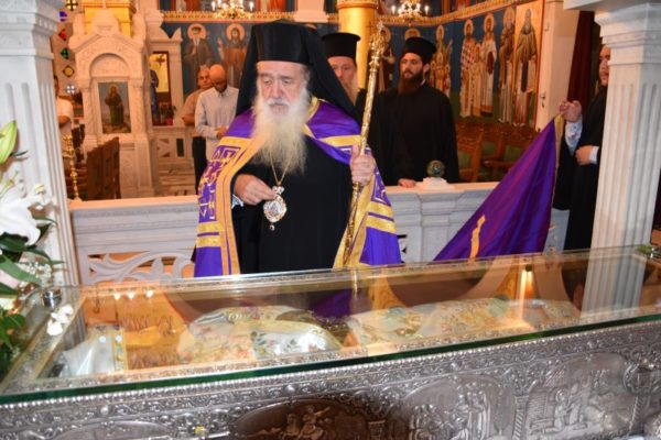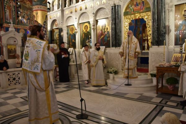 Ο Σεβασμιώτατος Μητροπολίτης Χαλκίδος κ. Χρυσόστομος υποδέχθηκε τον Σεβασμιώτατο Μητροπολίτη Σάμου, Ικαρίας και Κορσεών κ. Ευσέβιο, ο οποίος χοροστάτησε στον Όρθρο, προέστη στο Αρχιερατικό Συλλείτουργο και κήρυξε τον Θείο Λόγο.