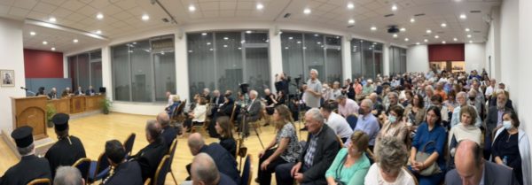 Μεταξύ του πολυπληθούς ακροατηρίου παρέστησαν ο Σεβασμιώτατος Μητροπολίτης Θεσσαλονίκης κ. Φιλόθεος, ο εψηφισμένος Επίσκοπος Σκοπέλου κ. Νικόδημος, η τέως Πρωθυπουργός κ. Βασιλική Θάνου, ο τ. Υπουργός κ. Ελευθέριος Παπαγεωργόπουλος, ο Βουλευτής Ευβοίας κ. Αθανάσιος Ζεμπιλης, η Πρόεδρος του Δημοτικού Συμβουλίου του Δήμου Χαλκιδέων κ. Δήμητρα Σακελλαράκη, ο Διευθυντής της Αστυνομικής Διευθύνσεως Ευβοίας Ταξίαρχος κ. Αθανάσιος Γερογιάκομος, ο Λιμενάρχης Χαλκίδος Πλοίαρχος κ. Κωνσταντίνος Φλουρής, ο Διοικητής των Πυροσβεστικών Υπηρεσιών Ευβοίας Πύραρχος κ. Κωνσταντίνος Ψαρρός, πολλοί πανεπιστημιακοί καθηγητές και συνεργάτες της εκδόσεως του Τόμου καθώς και πλήθος κόσμου.
