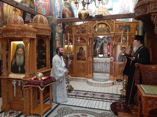 Το Σάββατο 13 Ιουνίου 2020 το πρωί, στον Ιερό Ησυχαστήριο Παναγίας Γοργοεπηκόου Ψαχνών, ο Σεβασμιώτατος Μητροπολίτης Χαλκίδος κ. Χρυσόστομος, συνοδευόμενος από τον Πρωτοσύγκελλό του, Αρχιμ. Νικόδημο Ευσταθίου και τον Διάκ. Ευγένιο Τσάλλα, χοροστάτησε στον Όρθρο και προεξήρχε στην Θεία Λειτουργία της αποδόσεως της Εορτής της Πεντηκοστής.