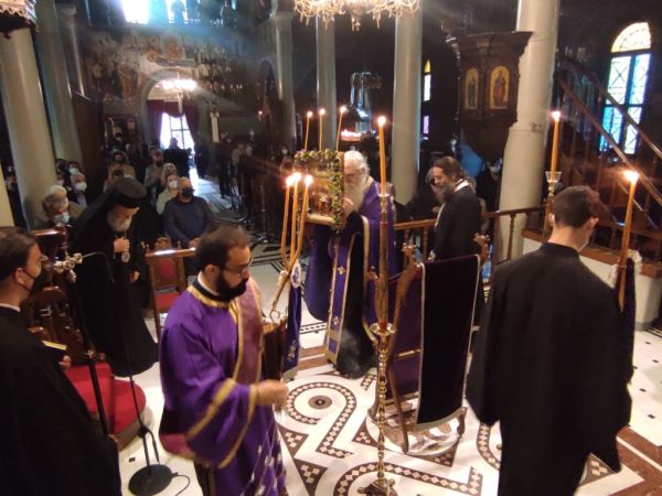 Το απόγευμα της Μεγάλης Τετάρτης, ο Σεβασμιώτατος, συνοδευόμενος από τον Διάκ. Σταύρο Καλαφάτη, χοροστάτησε κατά την ιερά Ακολουθία του Νιπτήρος στον Μητροπολιτικό Ιερό Ναό Αγ. Δημητρίου Χαλκίδος, με την συμμετοχή του Προϊσταμένου της Ενορίας, Αρχιμ. Αιμιλιανού Χρήστου, του συνεφημερίου του, Πρωτοπρεσβ. Γεωργίου Πολυκαρπίδη και πολυπληθούς εκκλησιάσματος, προς το οποίο κήρυξε τον θείο λόγο αναλύοντας την διαφορά του Ιουδαϊκού και του Χριστιανικού Πάσχα και αναπτύσσοντας την θεμελιώδη για τους Χριστιανούς αξία της συχνής Θείας Κοινωνίας, ευχήθηκε σε όλους να μην ομοιάσουμε στον Ιούδα, που έχασε τον Χριστό, εξ’ αιτίας της φιλαργυρίας του και να τύχουμε όλοι Δεσποτικής ξενίας και αθανάτου Τραπέζης.