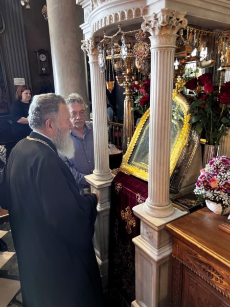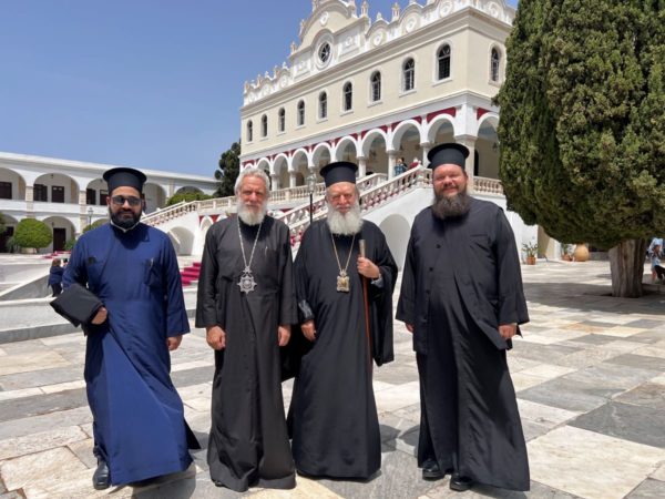 Την Κυριακή των Μυροφόρων τον Σεβασμιώτατο κ. Χρυσόστομο και τους προσκυνητές, υποδέχθηκε στον Πανίερο Ναό της Ευαγγελιστρίας ο Σεβασμιώτατος Μητροπολίτης Σύρου, Τήνου κ. Δωρόθεος.