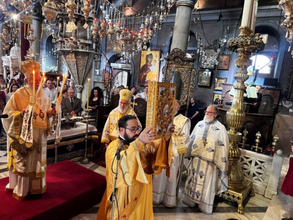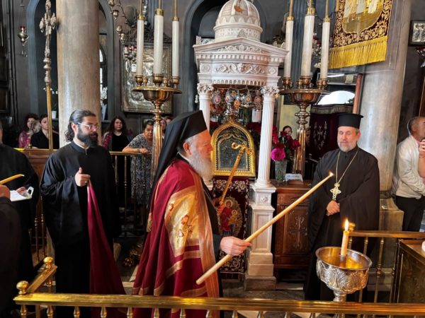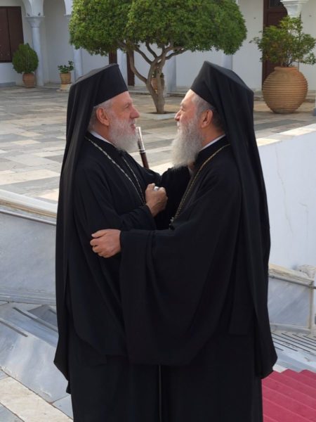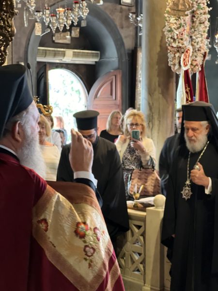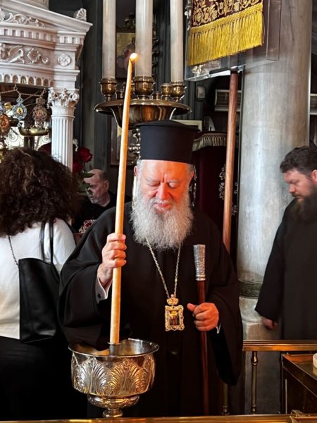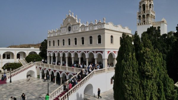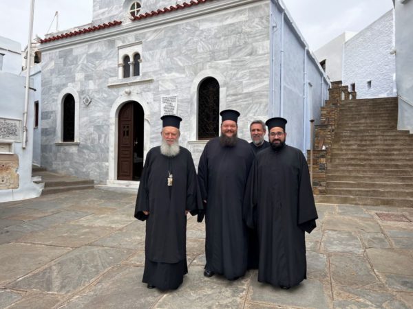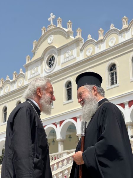 Την Κυριακή των Μυροφόρων τον Σεβασμιώτατο κ. Χρυσόστομο και τους προσκυνητές, υποδέχθηκε στον Πανίερο Ναό της Ευαγγελιστρίας ο Σεβασμιώτατος Μητροπολίτης Σύρου, Τήνου κ. Δωρόθεος.