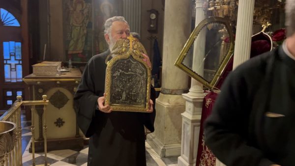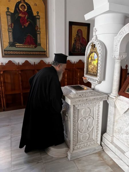 Τον Σεβασμιώτατο συνόδευσαν ο προϊστάμενος του Ιερού Ναού Αγίας Παρασκευής Πολιούχου Χαλκίδος αρχιμ. Συμεών Ηλιοδρομίτης, ο αρχιδιάκ. Σταύρος Καλαφάτης και πλήθος Χαλκιδέων ευσεβών προσκυνητών.