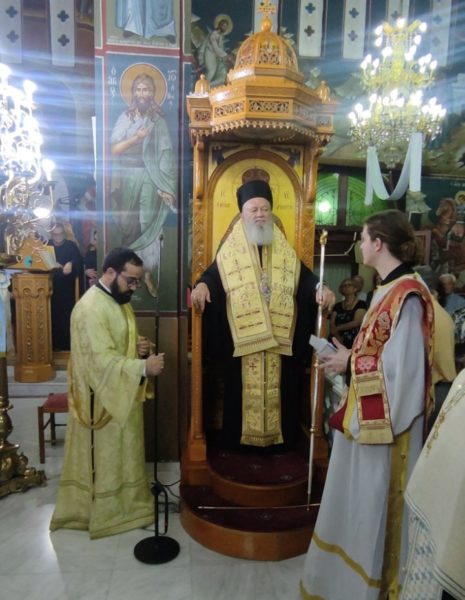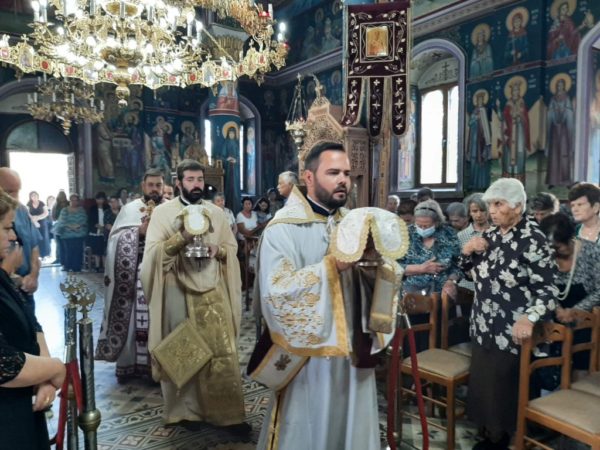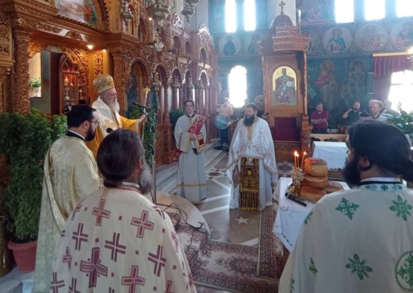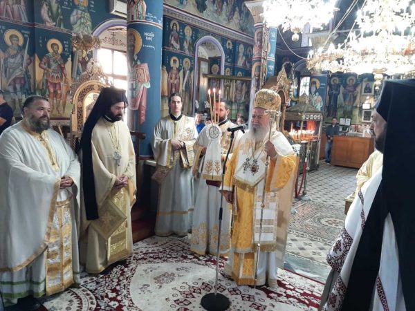 Συλλειτουργοί του Σεβασμιωτάτου παρέστησαν οι Αρχιμ. Αιμιλιανός Χρήστου και Χριστόδουλος Μάνιας-Εφημέριος της εορταζούσης Ενορίας, ο Πρεσβ. Νικόλαος Καλαφάτης και οι Διάκ. Σταύρος Καλαφάτης και Χρήστος Ραμαντανάκης.