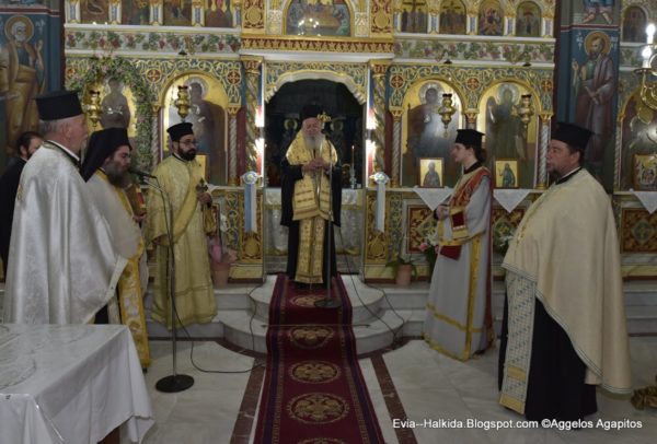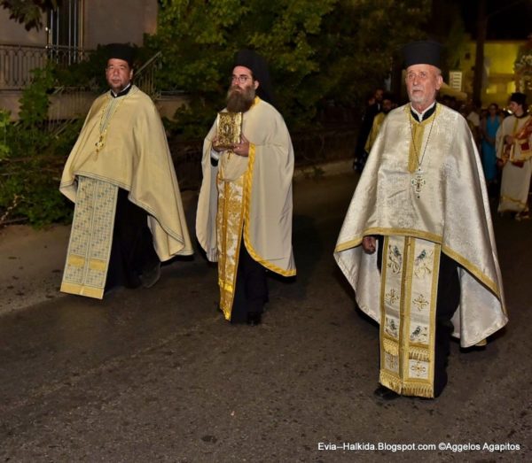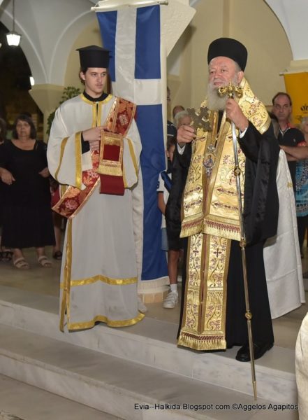 Τον Σεβασμιώτατο πλαισίωσαν ο Αρχιμ. Αιμιλιανός Χρήστου-Προϊστάμενος του Μητροπολιτικού Ι. Ναού Αγ. Δημητρίου Χαλκίδος, οι Πρωτοπρεσβ. Σταμάτιος Μπασδέκης-Εφημέριος της Ενορίας Κοιμήσεως Θεοτόκου Βασιλικού, Κωνσταντίνος Λοβέρδος-Εφημέριος της πανηγυριζούσης Ενορίας, Ευάγγελος Γαλάνης-Εφημέριος της Ενορίας Ευαγγελισμού της Θεοτόκου Χαλκίδος, οι Διάκ. Σταύρος Καλαφάτης και Χρήστος Ραμαντανάκης και πλήθους προσκυνητών.