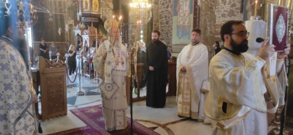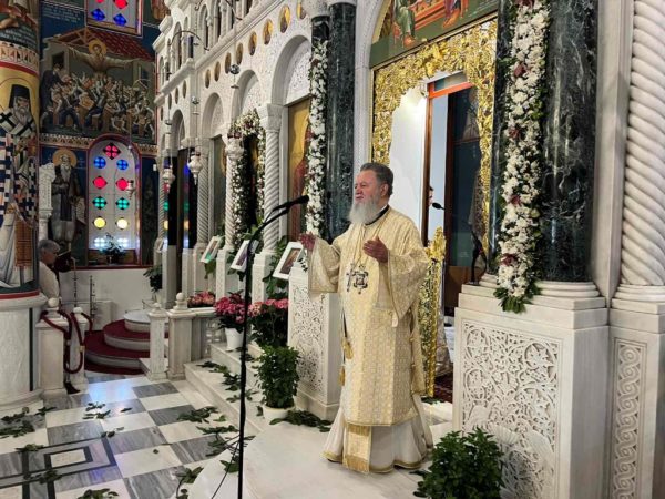 Στο κήρυγμά του, προς τους πολυπληθείς εκκλησιασθέντες πιστούς, ο Σεβασμιώτατος ανέπτυξε με απλό και διδακτικό τρόπο το δόγμα της Τριαδολογίας, ενώ, λίγο πριν την απόλυση του Εσπερινού, πραγματοποιήθηκε ιερά λιτανεία.