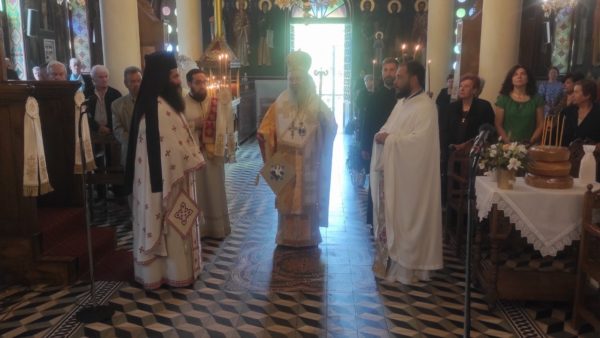 Το απόγευμα της Κυριακής ο Σεβασμιώτατος κ. Χρυσόστομος χοροστάτησε στον Εσπερινό της πανηγυριζούσης Ενορίας Αγ. Τριάδος Αμφιθέας, πλαισιούμενος από τον Πρωτοσύγκελλό του Αρχιμ. Νικόδημο Ευσταθίου, τον Αρχιερατικό Επίτροπο Διρφύων Πρωτοπρεσβ. Εμμανουήλ Βιολάκη, τους Εφημερίους των γειτονικών Ενοριών Καθενών, Οικον. Ιωάννη Κετσεντζή και Βούνων, Πρεσβ. Χρήστο Κουτσουράκη και τον Διάκ. Σταύρο Καλαφάτη.