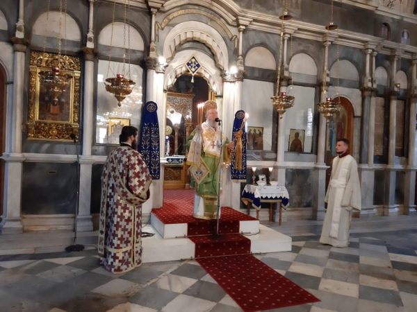 Το ιερό αναλόγιο διηκόνησαν ο δευτερεύων Εφημέριος της Ενορίας Οικον. Ιωάννης Φαφούτης-Καθηγητής της Σχολής Βυζαντινής Μουσικής της Ιεράς Μητροπόλεως και ο Ιεροψάλτης κ. Σταύρος Καλαφάτης, ενώ οι ιερές ακολουθίες μετεδόθησαν σε απευθείας σύνδεση από τον Ραδιοφωνικό Σταθμό της Ι. Μητροπόλεως Χαλκίδος (97,7fm).