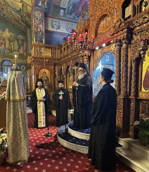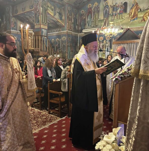 Κατά την Ιερά Ακολουθία, τον Σεβασμιώτατο πλαισίωσαν ο Αρχιμανδρίτης Τιμόθεος Μπαΐμπάκης-ιεροκήρυκας, ο σακελλάριος Χρήστος Γεωργαράς-εφημέριος της Ενορίας, οι διάκονοι Σταύρος Καλαφάτης και Χρήστος Ραμαντανάκης.