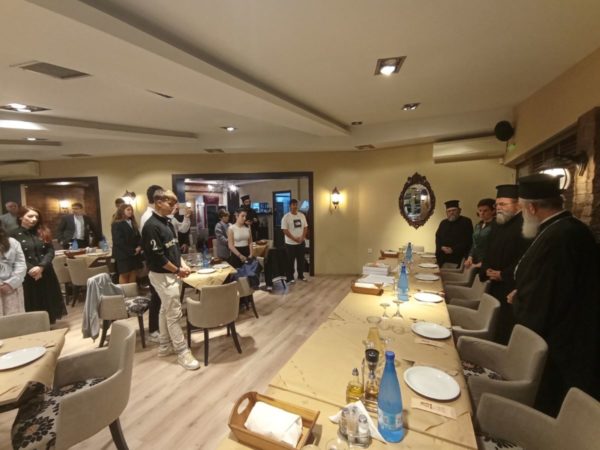 Αφού επέστρεψαν στη Χαλκίδα, ο Σεβασμιώτατος Μητροπολίτης Χαλκίδος κ. Χρυσόστομος παρακάθισε σε δείπνο με τους μαθητές, τις μαθήτριες και τους υπευθύνους συνοδούς τους αρχιμ. Δαμασκηνό Πετράκο-Α΄ Γραμματέα της Ι. Συνόδου της Εκκλησίας της Ελλάδος και Θεόκλητο Μέντη-Γραμματέα της Ειδικής Συνοδικής Επιτροπής Πολιτιστικής Ταυτότητος και Καθηγητές.