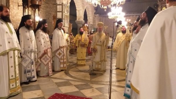 Με την έναρξη της Ιεράς Αγρυπνίας ετελέσθη η Ακολουθία του Μεγάλου Πανηγυρικού Εσπερινού, χοροστατούντος του Σεβασμιωτάτου Ποιμενάρχου μας, Μητροπολίτου Χαλκίδος κ. Χρυσοστόμου.