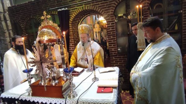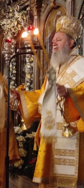 Συλλειτουργοί του Σεβασμιωτάτου ήταν ο αρχιμ. Νεκτάριος Ευγένικος-ιεροκήρυκας, ο πρωτοπρεσβ. Σταμάτιος Μπασδέκης-εφημέριος της Ενορίας και ο αρχιδιάκ. Σταύρος Καλαφάτης.