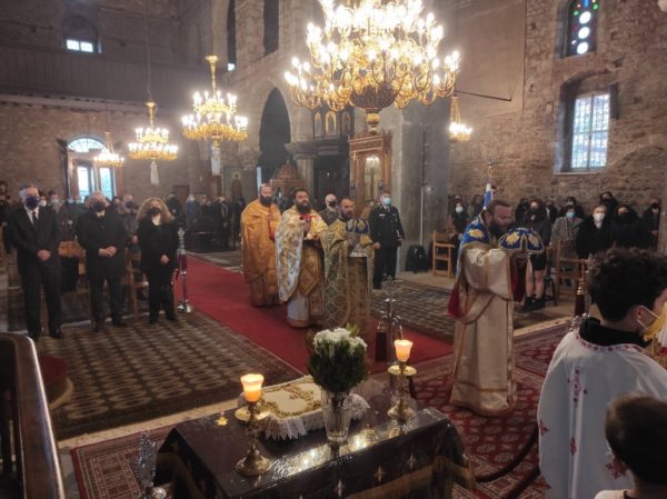 Κατά την αυτή παράδοση, κάθε χρόνο των Τριών Ιεραρχών, στον Ι. Ναό της Πολιούχου προσέρχονται αντιπροσωπείες σημαιοφόρων μαθητών όλων των Σχολείων, οι Διευθυντές Α/βάθμιας και Β/βάθμιας Εκπαιδεύσεως, εκπρόσωποι των Αρχών του τόπου, σύλλογοι Διδασκάλων και Καθηγητών και πλήθος πιστών κάθε ηλικίας, που τιμούν αυθόρμητα τα τρία αηδόνια, όπως τους εξυμνεί η Εκκλησία, που με την μελωδία της διδασκαλίας τους εμήνυσαν την πνευματική άνοιξη του κόσμου.