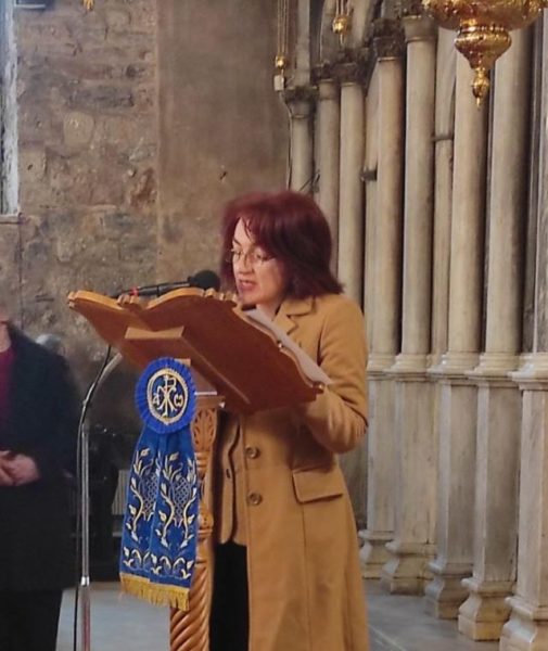 Στη διάρκεια του Κοινωνικού ομίλησε η κ. Αμαλία Κοτσαλά-Καραγκούνη-Φιλόλογος του Γενικού Λυκείου Κανήθου Χαλκίδος, αναφερθείσα στην προσφορά των Τριών Ιεραρχών στο διαχρονικό πολιτισμικό οικοδόμημα και πώς με την έργω και λόγω διδασκαλία τους, έμπρακτα κατακυρώνουν ότι η εν Χριστώ Παιδεία δίνει λύσεις σε πανανθρώπινα αδιέξοδα.