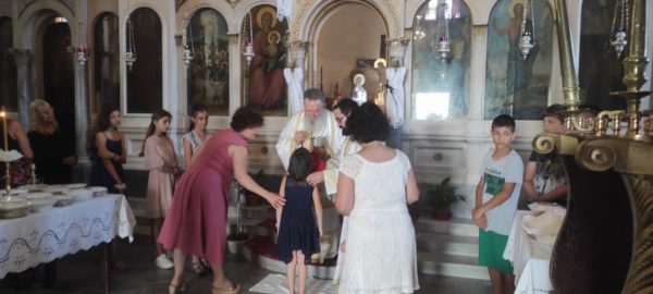 Κατά τη διάρκεια της Θείας Λειτουργίας, ήταν ιδιαιτέρως συγκινητική η συμμετοχή των παιδιών και των νέων της Ενορίας και η αθρόα προσέλευση τους στη Θεία Κοινωνία. Ο Σεβασμιώτατος επαίνεσε τον π. Αλέξιο και τους Κατηχητές και τις Κατηχήτριες, που εργάζονται ανύστακτα υπέρ των νέων μελών της ενοριακής εκκλησιαστικής κοιτίδας, ενώ, στο τέλος, μοίρασε στα παιδιά συλλεκτικά ενθύμια της εκατονταετηρίδας του Οσίου Ιωάννου του Ρώσσου στην Εύβοια.