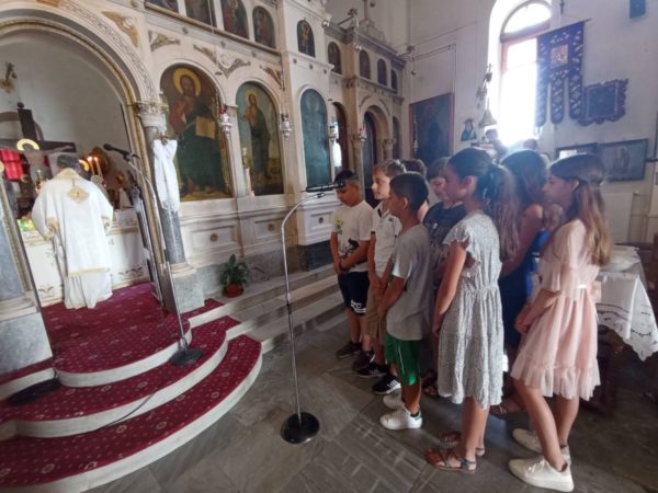 Κατά τη διάρκεια της Θείας Λειτουργίας, ήταν ιδιαιτέρως συγκινητική η συμμετοχή των παιδιών και των νέων της Ενορίας και η αθρόα προσέλευση τους στη Θεία Κοινωνία. Ο Σεβασμιώτατος επαίνεσε τον π. Αλέξιο και τους Κατηχητές και τις Κατηχήτριες, που εργάζονται ανύστακτα υπέρ των νέων μελών της ενοριακής εκκλησιαστικής κοιτίδας, ενώ, στο τέλος, μοίρασε στα παιδιά συλλεκτικά ενθύμια της εκατονταετηρίδας του Οσίου Ιωάννου του Ρώσσου στην Εύβοια.