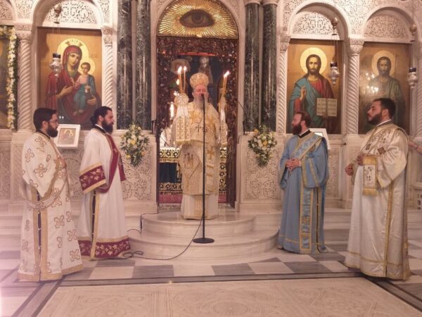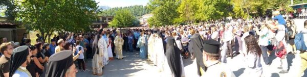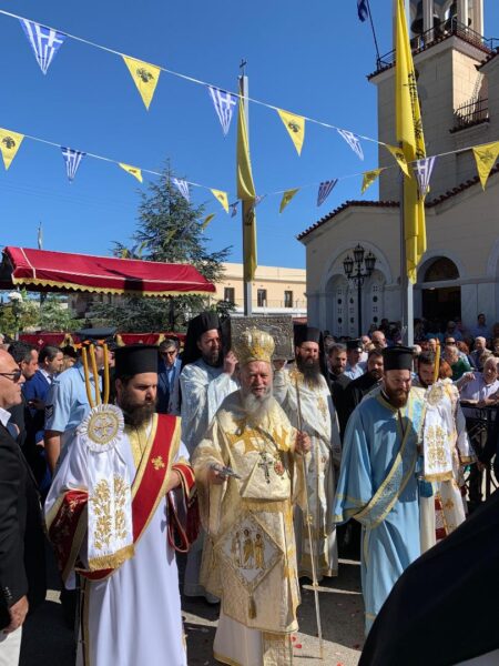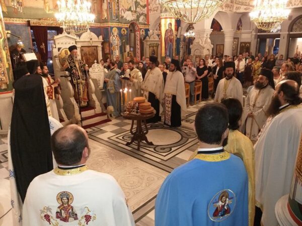 Μετά την συμμετοχή πολλών πιστών στο Κοινό Ποτήριο και πριν την απόλυση της Θείας Λειτουργίας, ο Σεβασμιώτατος άγιος Χαλκίδος ευχαρίστησε τους συλλειτουργούς του, τον Αρχιγραμματέα της Ιεράς Συνόδου Αρχιμ. Φιλόθεο Θεοχάρη, τους εκ του Πατριαρχίου Βουλγαρίας παρεπιδήμους Κληρικούς με επικεφαλής τον Αρχιμ. Βασίλειο-Πρωτοσύγκελλο του Μακαριωτάτου Πατριάρχου Βουλγαρίας κ. Νεοφύτου τον Αρχιμ. Νικόδημου Ευσταθίου-Πρωτοσύγκελλο της Ι. Μητροπόλεως και Αντιπρόεδρο του Ιερού Προσκυνήματος, τον οποίο συνεχάρη για το μεστό νοημάτων κήρυγμά του, τον Γενικό Αρχιερατικό Επίτροπο Αρχιμ. Νικηφόρο Ευσταθίου, τον Πρωτοπρεσβ. Ιωάννη Μάρκου Αρχιερατικό Επίτροπο Κηρέως, τους Ιερείς του Προσκυνήματος και όλους τους, εγγύς ή μακράν, προσελθόντες Κληρικούς.