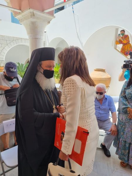 Ωσαύτως δώρα στην κυρία Πρόεδρο προσέφερε και ο π.Γρηγόριος εκ μέρους του Εκκλησιαστικού Συμβουλίου.