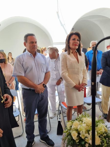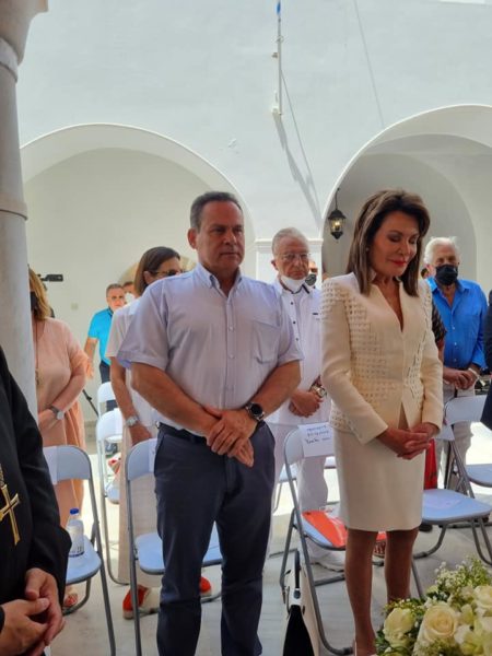 Παρέστη η Πρόεδρος του «ΕΛΛΑΔΑ 2020 – 2021» κυρία Γιάννα Δασκαλάκη – Αγγελοπούλου χορηγός του έργου της νέας Βιβλιοθήκης του Ι. Μητροπολιτικού Ναού του Αγίου Νικολάου Σπετσών, ο Βουλευτής κ. Ν. Μανωλάκος και λοιποί επίσημοι, αρχές της Νήσου και πλήθος Σπετσιωτών και παρεπιδημούντων.