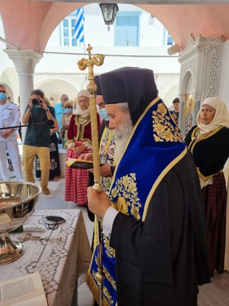 Τον αγιασμό τέλεσε ο Σεβασμιώτατος Μητροπολίτης Ύδρας, Σπετσών και Αιγίνης κ. Εφραίμ με την συμμετοχή του Πανοσ. Πρωτοσυγκέλλου Αρχιμ π. Νεκταρίου Δαρδανού, του Γ.Α.Ε πρωτ. π. Ακινδύνου Δαρδανού και των Πατέρων της Νήσου.