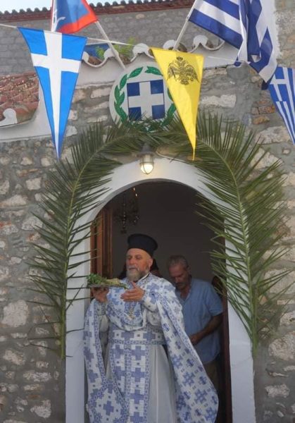 Ακολούθησε η λιτάνευση της Ιεράς Εικόνας και της Τιμίας Χειρός του Αγίου και εόρτιο κέρασμα.