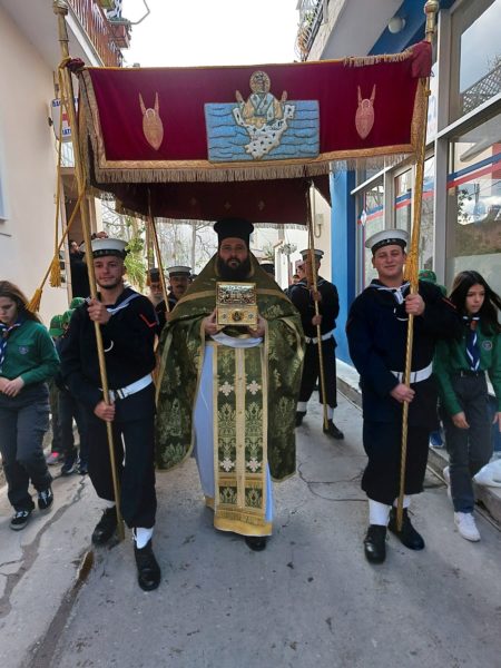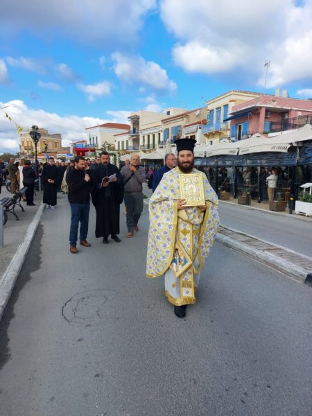 Ακολούθησε η Λιτάνευση της Ιεράς Εικόνος του Αγίου στις κεντρικούς οδούς της Νήσου.