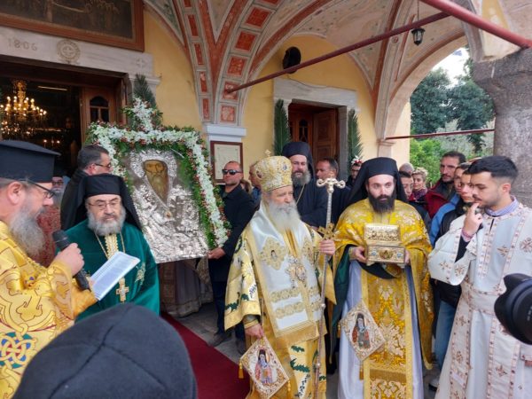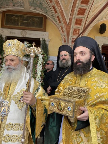 Τελετάρχης στην λιτάνευση της Ιεράς Εικόνος ήταν ο Γενικός Αρχιερατικός Επόπτης Αιγίνης Αρχιμ. π. Αμφιλόχιος Γελαδάκης, ενώ παρέστη ως συλλειτουργός με τους Πατέρες της Νήσου και ο Πανοσ Πρωτοσύγκελλος Αρχιμ. π.Νεκτάριος Δαρδανός, Γραμματεύς πάρα τω Αρχιγραμματεί της Ιεράς Συνόδου.