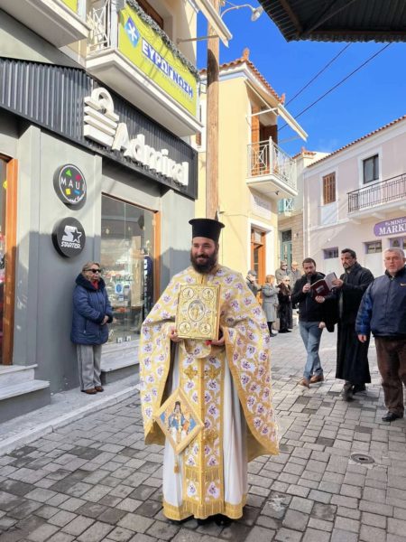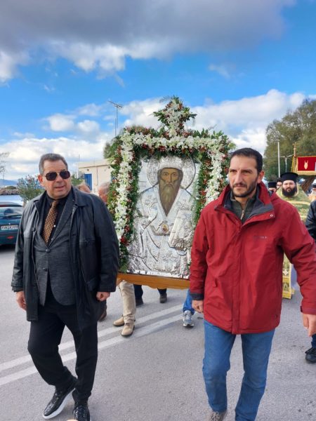 Ακολούθησε η Λιτάνευση της Ιεράς Εικόνος του Αγίου στις κεντρικούς οδούς της Νήσου.