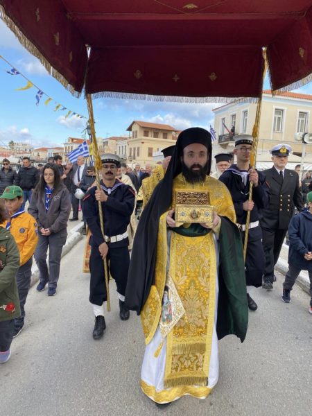 Ο Σεβασμιώτατος Μητροπολίτης Ύδρας, Σπετσών και Αιγίνης κ. Εφραίμ μίλησε εμπνευσμένα και τέλεσε την πανηγυρική Δοξολογία.