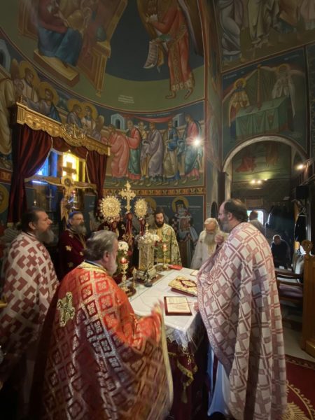 Όρθρος και Πανηγυρική Θεία Λειτουργία επί τη εορτή του Αγίου ενδόξου Αποστόλου Κρίσπου, του πρώτου Επισκόπου Αιγίνης, τελέστηκε χθες, Πέμπτη 8 Δεκεμβρίου 2022, στους Αγίους στην Αίγινα.