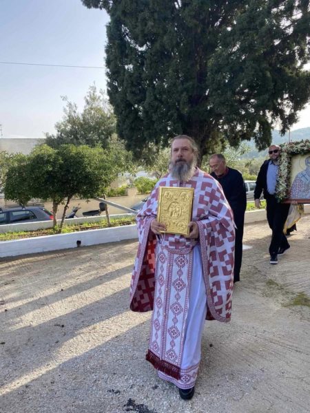 Ακολούθησε η Λιτάνευση της Ιεράς Εικόνος και κέρασμα εις το Αρχονταρίκι της ενορίας τη μερίμνη του προϊσταμένου του πανηγυρίζοντος Ιερού Ναού πρωτοπρεσβυτέρου π. Φανουρίου Μακαρατζή.