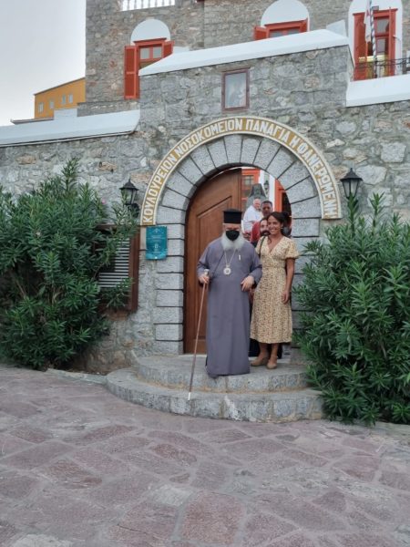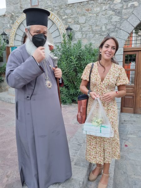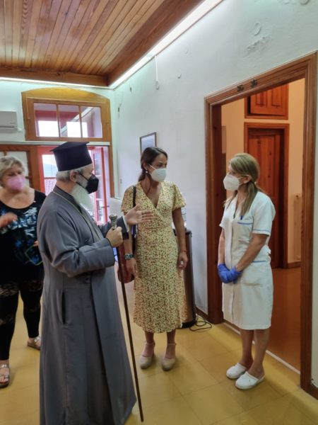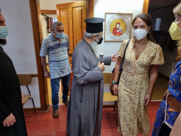 Η Δόμνα Μιχαηλίδου με τον Μητροπολίτη Ύδρας στο Κουλούρειο Νοσοκομείο