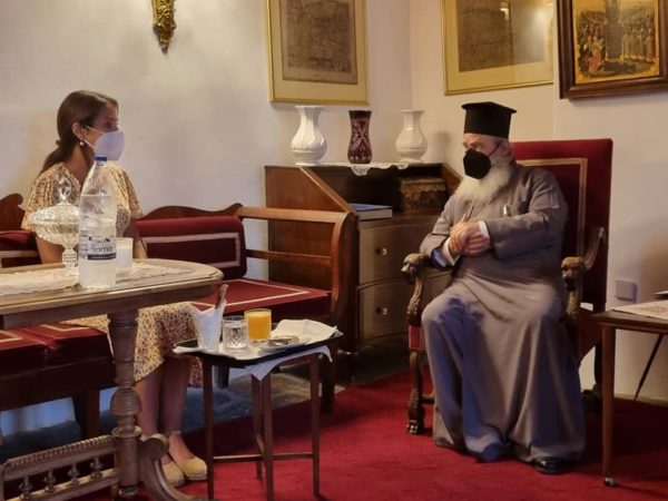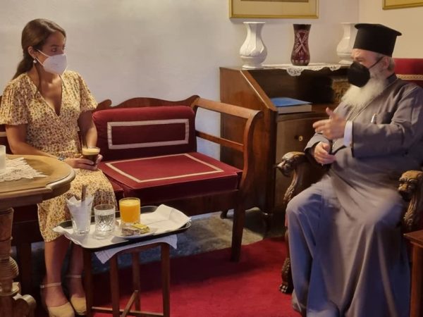 Ο Σεβασμιώτατος Μητροπολίτης Ύδρας, Σπετσών, Αιγίνης κ.Εφραίμ δέχθηκε το απόγευμα της Τετάρτης, 17ης Αυγούστου 2022, στο Αρχονταρίκι του Ι.Καθεδρικού Ναού Ύδρας την Υφυπουργό Εργασίας και Κοινωνικών Υποθέσεων Δόμνα Μιχαηλίδου.