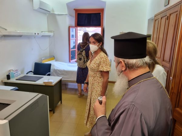 Εν συνεχεία η κ.Υπουργός με τον Σεβασμιώτατο μετέβησαν στο Κουλούρειο Νοσοκομείο όπου η κ.Υπουργός ξεναγήθηκε υπό του Σεβασμιωτάτου Προέδρου στους χώρους του Ιδρύματος και εξέφρασε τα θερμά της συγχαρητήρια για την άψογη λειτουργία του και το έργο που επιτελεί στον τομέα της υγείας το Κουλούρειο Νοσοκομείο Ύδρας.