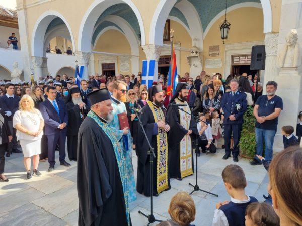 Στη συνέχεια ο Σεβασμιώτατος προέστη της Δοξολογίας επί τη Εθνική επετείω και ακολούθως παρέστη εις την επιμνημόσυνη δέηση εις το Ηρώων και στις εορταστικές εκδηλώσεις που κορυφώθηκαν με την μαθητική παρέλαση.