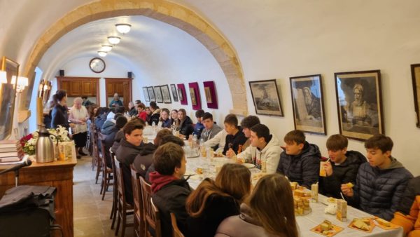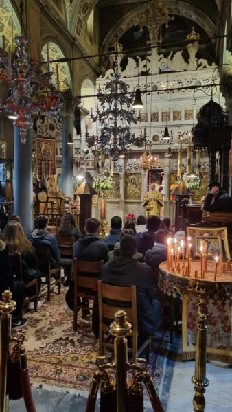 Μετά το πέρας της Αρχιερατικής Θείας Λειτουργίας ο Σεβασμιώτατος παρέθεσε στηνΔιευθύντρια του Λυκείου Ύδρας, στους Καθηγητές και τα παιδιά δεξίωση, στην τραπεζαρία όπου έγινε και επίκαιρη συζήτηση.