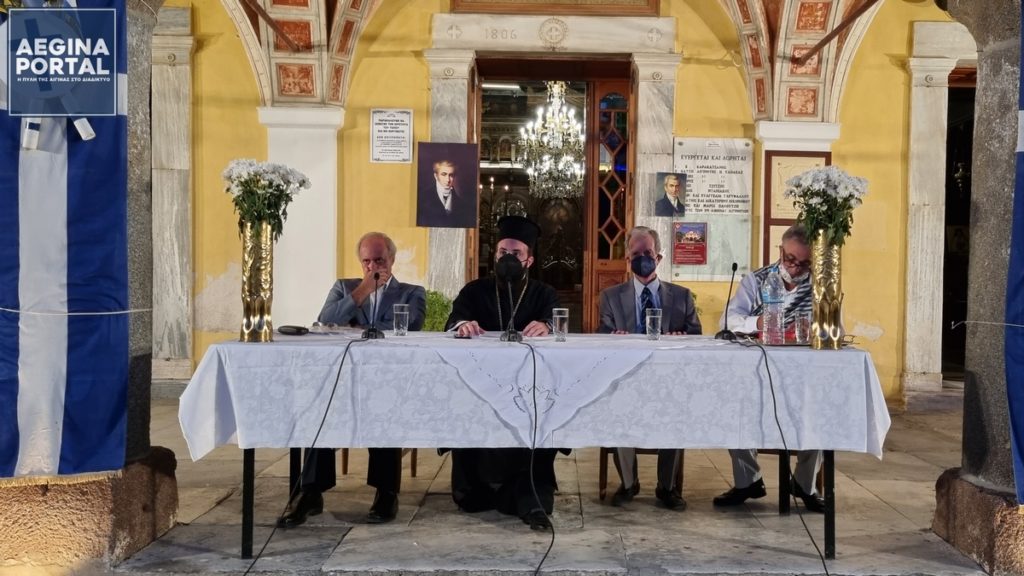 Μία ενδιαφέρουσα θεματική εκδήλωση με τίτλο “Η συμβολή της εν Αιγίνη Εκκλησίας, στην Επανάσταση του 1821”, πραγματοποιήθηκε από την Ιερά Μητρόπολη Ύδρας, Σπετσών και Αιγίνης, το βράδυ της Κυριακής στο προαύλιο της Μητρόπολης.