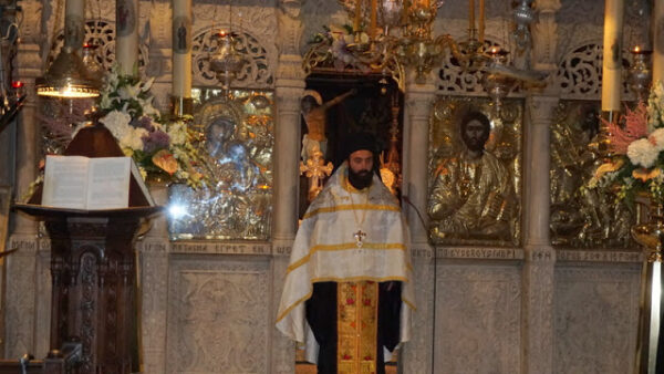 Ακολούθησε χαιρετισμός του Σεβασμιωτάτου Μητροπολίτου Ύδρας, Σπετσών και Αιγίνης κ. Εφραίμ προς τους παρευρισκόμενους και επίκαιρη αλλά συνάμα ψυχωφελή ομιλία του Πρωτοσύγκελλου της Ι. Μητρόπολης Πανοσ. Αρχιμανδρίτη π. Νεκτάριου Δαρδανού αναφερόμενος στην Υπεραγία Θεοτόκο.