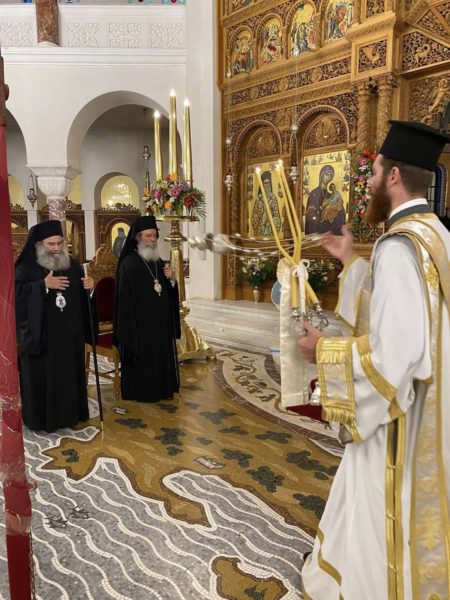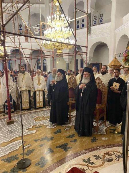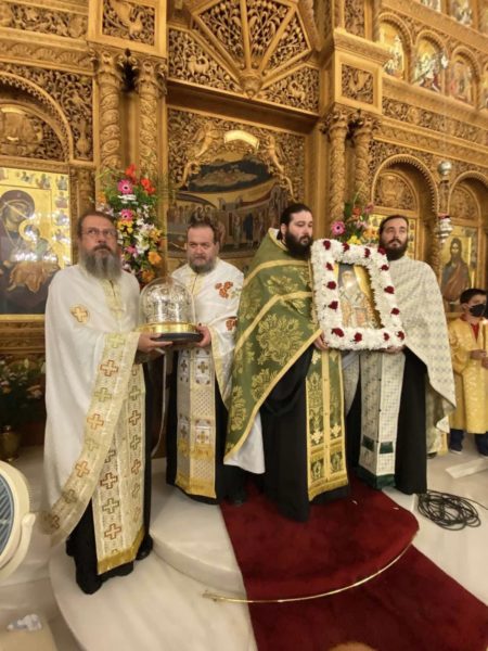 Με λαμπρότητα τελέστηκε σήμερα στον παμμεγέθη πανηγυρίζοντα Ιερό Ναό του Αγίου Νεκταρίου Αιγίνης ο Μέγας Τρισαρχιερατικός Εσπερινός χοροστατούντος και ομιλούντος του Θεοφιλεστάτου Επισκόπου Ευρίπου κ. Χρυσοστόμου. Συγχοροστάτησαν ο Σεβασμιώτατος Μητροπολίτης Μάνης κ.Χρυσόστομος Γ ‘ και ο Σεβασμιώτατος Μητροπολίτης Ύδρας κ. Εφραίμ.
