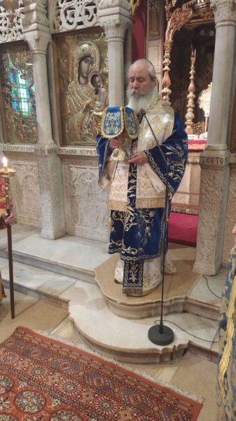 Ο Σεβασμιότατος Μητροπολίτης Ύδρας, Σπετσών και Αιγίνης κ. Εφραίμ χοροστάτησε στον Όρθρο και προεξήρχε της Αρχιερατικής Θείας Λειτουργίας και της τέλεσης του Μεγάλου Αγιασμού.
