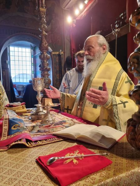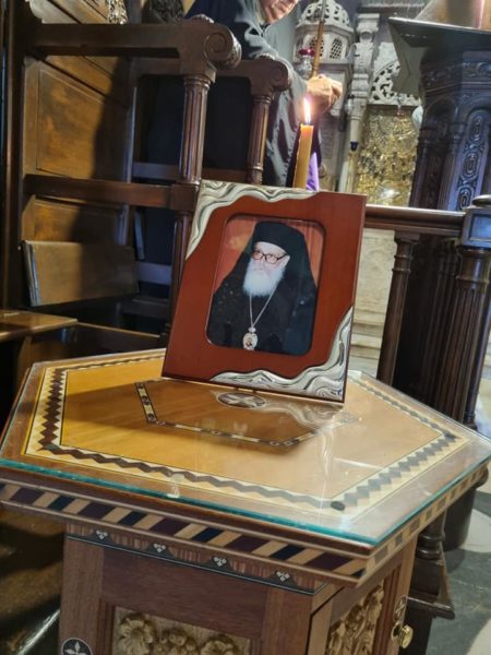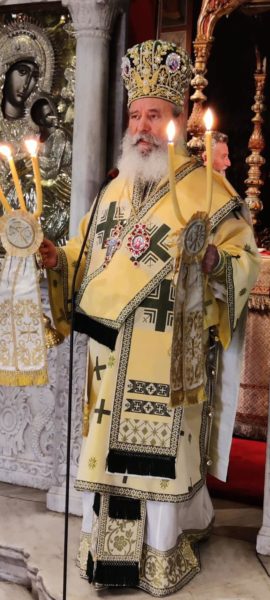 Προ της απολύσεως τέλεσε Αρχιερατικό Τρισάγιο δια τον αοίδιμο Γέροντα Μητροπολίτη Ύδρας κυρό Ιερόθεο, επί τη εγγιζούση εορτή του Αγίου Ιεροθέου.