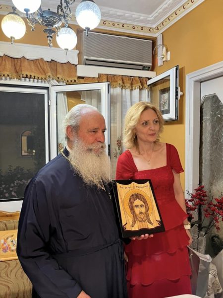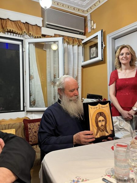 Ομίλησε διδακτικά στους πιστούς για τα τελούμενα επεξηγώντας την ακολουθία των θυρανοιξίων και ευχαρίστησε τους κτήτορες του Ι. Ναού για την πρωτοβουλία ανέγερση του.