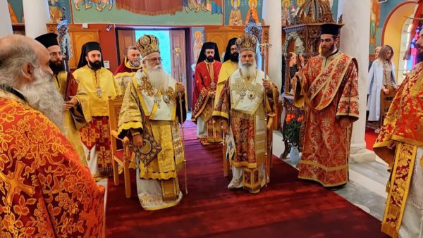 Στη εξέδρα ο Σεβασμιώτατος Μητροπολίτης Ύδρας, Σπετσών και Αιγίνης κ. Εφραίμ ευχαρίστησε όλους όσους συμμετείχαν στην πανήγυρη και ευχήθηκε την ευλογία του Νεομάρτυρος σε όλους.