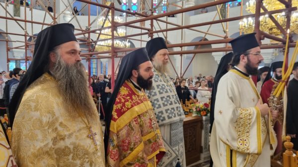 Συλλειτούργησαν ο Σεβασμιώτατος Μητροπολίτης Γόρτυνος και Μεγαλοπόλεως κ. Νικηφόρος, ο Θεοφιλέστατος Επίσκοπος Έγρας του Πατριαρχείου Σερβίας κ. Νεκτάριος και ο Σεβασμιώτατος Μητροπολίτης Ύδρας, Σπετσών και Αιγίνης κ. Εφραίμ, ο οποίος ευχαρίστησε με θερμά λόγια τους Αγίους Αρχιερείς την Υφυπουργό Παιδείας και θρησκευμάτων κ. Δόμνα Μιχαηλίδου, τους Ιερείς, την Αγία Καθηγουμένη μ. Τιμοθέη, την χορωδία , τις αρχές, τα Σχολεία κλπ.