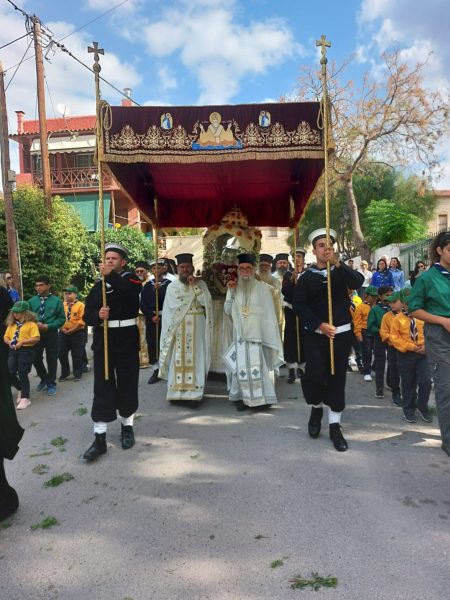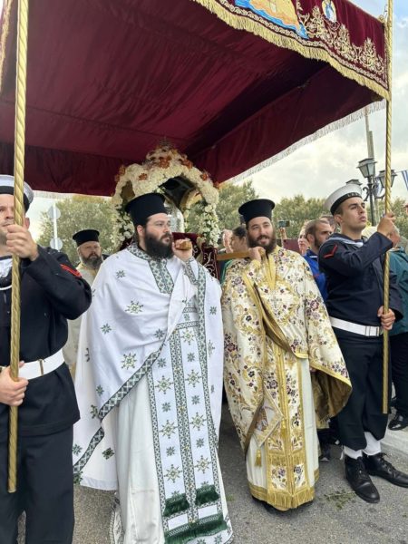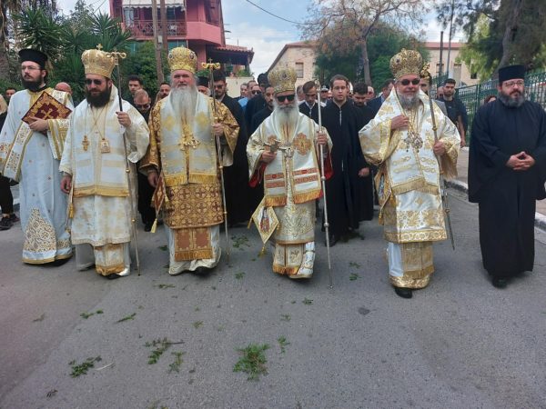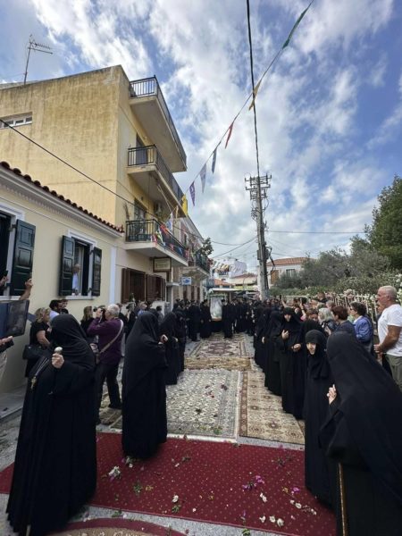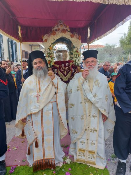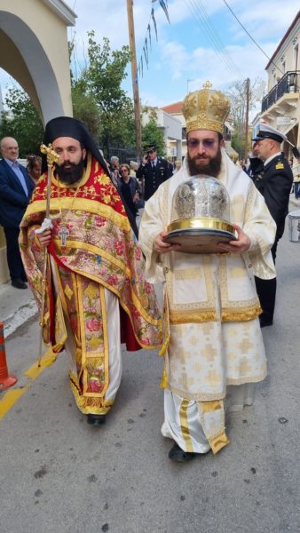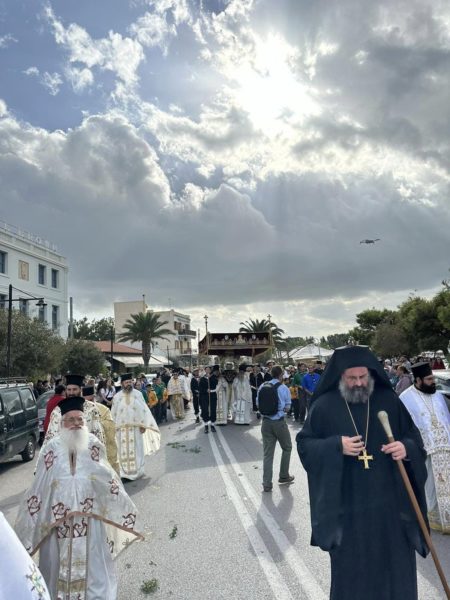 Μετά την πανηγυρική Δοξολογία σχηματίστηκε λιτανευτική πομπή η οποία διέλθε από τον λιμένα της Νήσου και κατέληξε στον Ιερό Μητροπολιτικό Ναό.